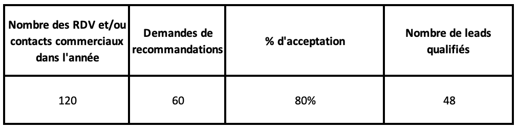 • Si à chacun de ces rendez-vous vous aviez systématiquement demandé une recommandation, combien auriez-vous généré de nouvelles cibles de prospection faciles à contacter ?